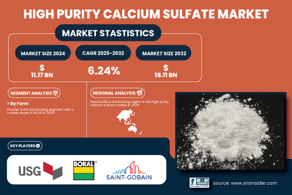 High Purity Calcium Sulfate Market to Hit USD 18.11 Billion by 2032 | SNS Insider