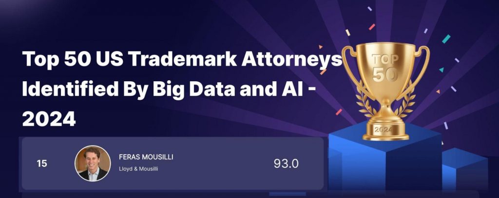 Feras Mousilli Ranked #15 Top U.S. Trademark Lawyer by Big Data AI-Powered Rankings. Dr. Feras Mousilli, Founder and Managing Partner at Lloyd & Mousilli, has been named #15 among the Top 50 U.S. Trademark Attorneys for 2024 by data analytics firm Huski.ai. This objective, AI-driven ranking of big data highlights his expertise in intellectual property […]