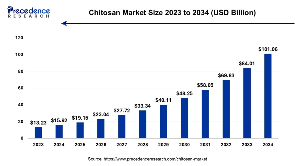 The global chitosan market size accounted at USD 15.92 billion in 2024 and is expected to be worth around USD 101.06 billion by 2034. It is growing at a CAGR of 20.29% from 2024 and 2034. The North America chitosan market is growing at rapid CAGR of 20.42% from 2024 to 2034. Ottawa, Oct. 11, […]