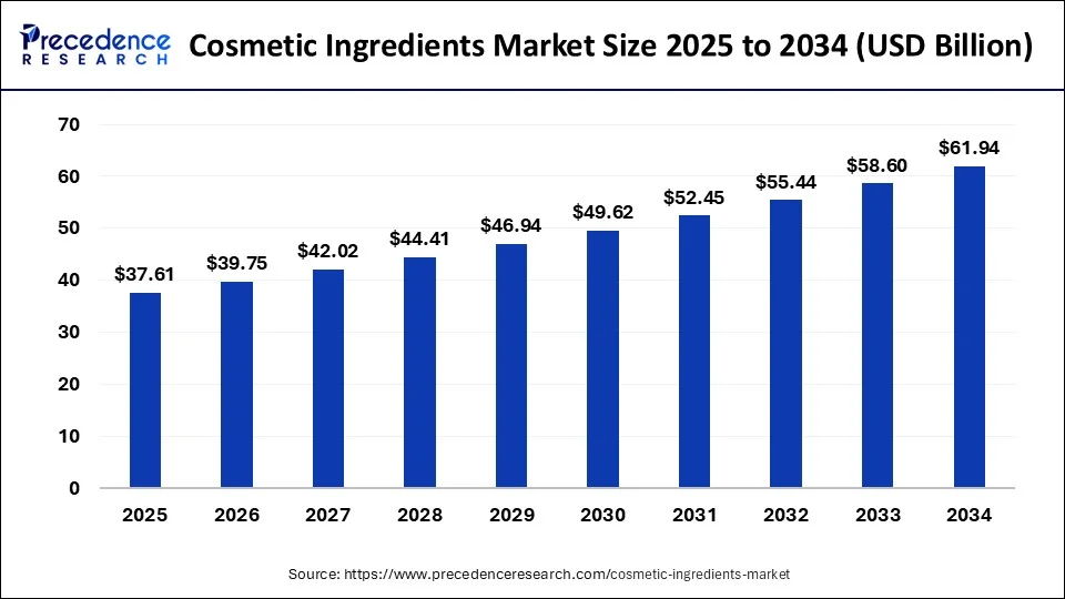 Cosmetic Ingredients Market Size Worth USD 61.94 Billion by 2034 Driven by Rising Demand for Natural and Organic Formulations