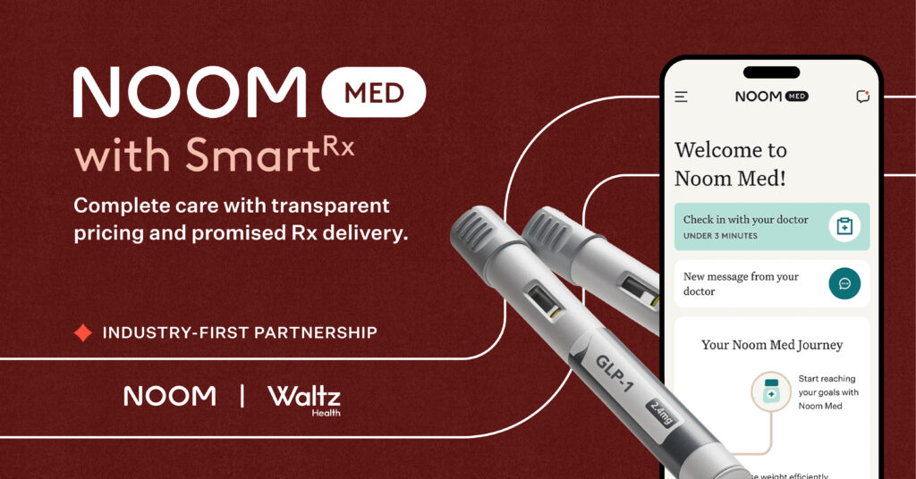 Noom Med with SmartRx, is the first program offering an end-to-end weight loss management solution that supports employers and health plans in delivering effective obesity care. Noom partnered with Waltz Health to provide direct, cost-effective access to GLP-1 medications, bypassing traditional intermediaries and reducing overall treatment costs for employers.